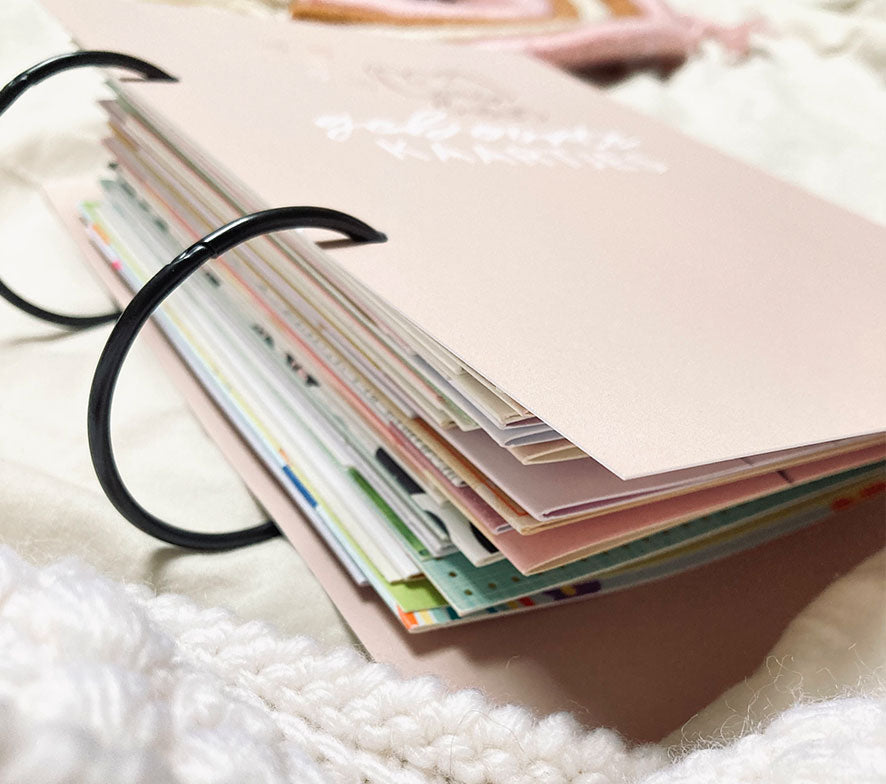 Bewaar die kostbare kaartjes veilig en dichtbij met de handige bewaarbundel. Bijzondere momenten verdienen het om gekoesterd te worden, vooral als ze gevuld zijn met lieve woorden en wensen.