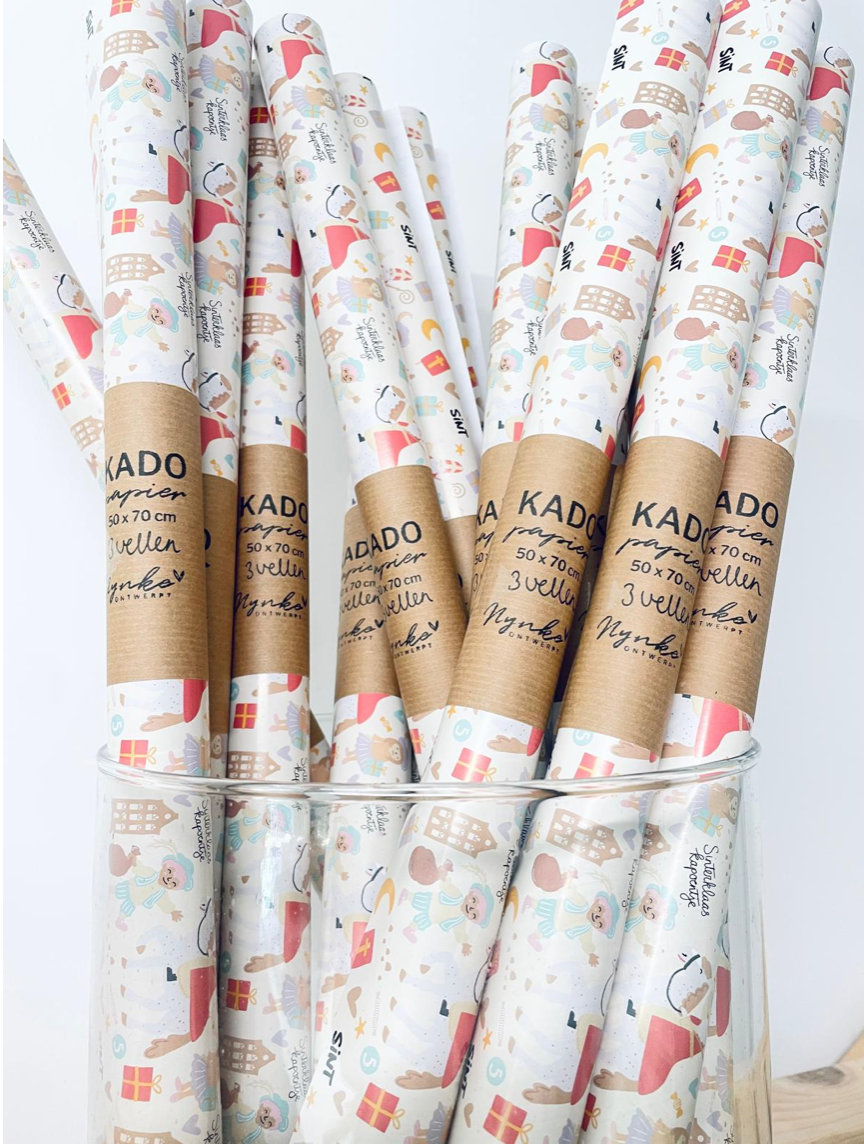 Het kadopapier is gemaakt van 100 grams licht glanzend papier. Je ontvangt 3 vellen van 50x70cm en wordt opgerold geleverd.