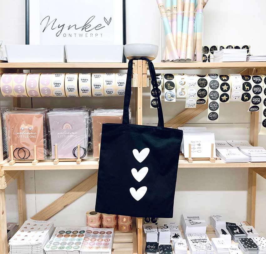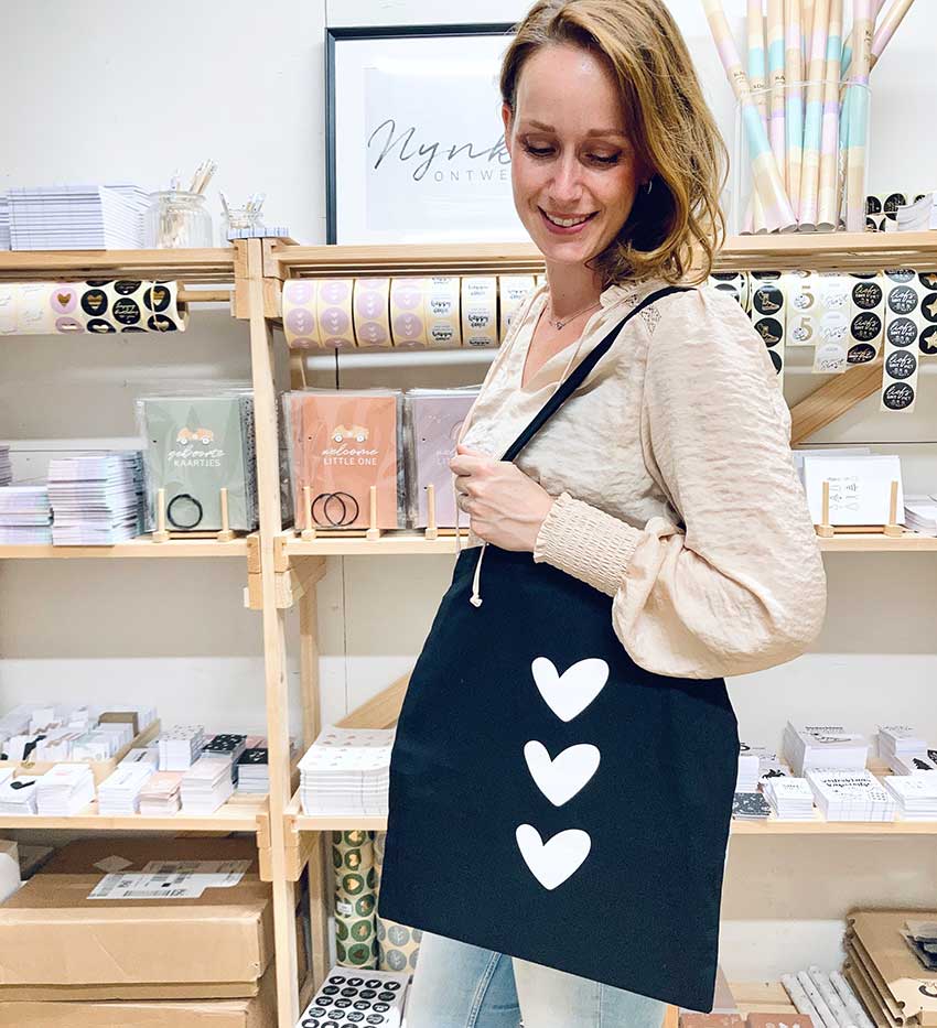 Een stijlvolle katoenen tas met drie hartjes op de voorkant. Een must-have voor allerlei gelegenheden. Of je nu boodschappen doet, een dagje gaat winkelen, of een ontspannen dag op het strand plant, deze tas komt altijd van pas.